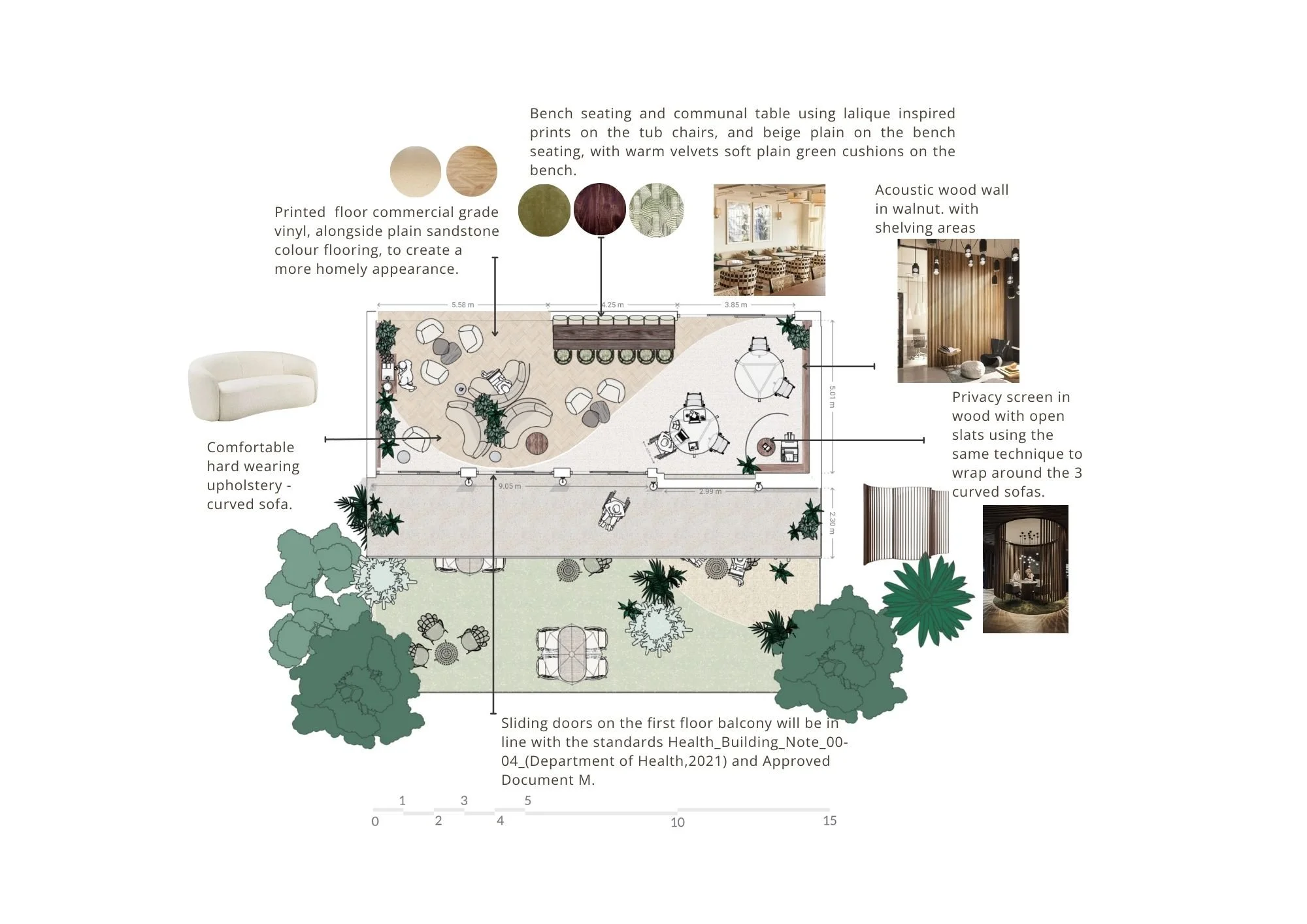 Wareham Hospital required a conceptual redesign focusing on creating a more human-centred, restorative environment supporting staff wellbeing. The project explored how evidence-based design principles, biophilic elements, acoustic consideration, spatial flow and sustainable materials could transform clinical spaces into calming, nurturing settings that offered inclusive supported environment to realign and recalibrate during their working day.